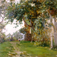Durante i suoi soggiorni a Cimpello, nei pressi di Fiume Veneto, Corompai amava raffigurare alcuni scorci paesaggistici, prediligendo da un lato la campagna intorno alla sua casa, dall’altro alcune zone particolarmente suggestive dal punto di vista paesaggistico, come quella della Valcellina intorno al lago di Barcis, da cui peraltro proveniva la sua donna di servizio. Più volte l’artista si lasciò ispirare da quei luoghi incantati, come si evince dall’elenco dei dipinti presentati nel corso degli anni Venti alle esposizioni regionali. Questa tela raffigura dei rustici casolari, seminascosti dalla presenza delle rigogliose chiome di alcuni alberi. La tecnica è veloce, quasi compendiaria, atta a dimostrare il modus operandi del pittore, che amava raccogliere in “appunti” le impressioni che egli percepiva osservando un particolare scorcio o un soggetto particolare. Successivamente rielaborava la propria idea in studio e da lì uscivano dipinti di grandi e piccoli formati, che comunque non perdevano l’immediatezza del bozzetto originale. La materia pittorica si costituisce di colori stesi direttamente sulla tela in piccole macchie, a formare le chiome arboree, vere protagoniste del dipinto, o il terreno su cui si elevano le costruzioni umane. Le tinte sono chiare, quasi a volere intendere che ci troviamo in una giornata caratterizzata da un pallido sole, con il cielo velato, mentre la gamma cromatica è ristretta e si costituisce perlopiù di verdi, presenti in varie gradazioni e intervallati solo dai gialli e dai marroni con cui sono realizzati la staccionata e i dettagli delle case.