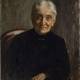 La tela reca sul retro una scritta autografa che ci permette di individuare il personaggio ritratto, Caterina Soppelsa, la madre del pittore, l’età dell’effigiata e quindi anche la data di esecuzione, il 1923. Duilio Corompai dimostrò sempre un grande attaccamento alla madre, che si occupò con dedizione dell’educazione dei figli, e la ritrasse molte volte nel corso della sua lunga ed intensa carriera. È stato rintracciato un carboncino che la raffigura ancora giovane nel 1894, quando l’artista aveva appena diciotto anni. La famiglia si era da un anno trasferita a Bologna e il giovane Corompai si era appena iscritto all’Accademia di Belle Arti della città, per completare la propria formazione e sviluppare le doti artistiche e una propensione al mestiere che si sarebbero rivelate appieno nelle opere del nuovo secolo. Il dipinto ci mostra una donna che, pur segnata dal trascorrere del tempo, mantiene quella sorta di fierezza coniugata ad umiltà che si poteva rintracciare anche nel carboncino di cui si diceva poc’anzi. Ella fissa gli occhi azzurri sul riguardante, con un’espressione che si potrebbe definire in un misto di imbarazzo e tenerezza. È raffigurata a mezzo busto frontalmente, vestita con gli abiti neri che forse le imponeva il lutto coniugale, seduta su una semplice sedia di legno dallo schienale tondeggiante. L’attenzione del pittore si fissa sui tratti fisionomici dell’effigiata, che sono resi con una precisione quasi fotografica; egli si sofferma in particolare sulle rughe del volto, sui capelli diradati o sui semplici gioielli che soli la donna si concede quale abbellimento. Tale minuziosità, unitamente all’introspezione psicologica con cui il pittore indaga l’animo della persona ritratta, riconducendo direttamente al verismo ottocentesco, cui Corompai avrebbe continuato a riferirsi in molti suoi ritratti.