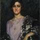 Ignoto rimane il soggetto ritratto in questa tela di medie dimensioni: si tratta di una giovane donna raffigurata a mezzo busto, che rivolge lo sguardo all’osservatore, mentre con gesto quasi vezzoso porta la mano al fianco per spostare il lembo della ricca stola che le copre le spalle, realizzata con precisione, soprattutto nel suo effetto cangiante, attraverso l’uso di colori puri, soprattutto verde e viola, alternati ad alcuni piccoli tocchi bianchi. Mentre i tratti della capigliatura bruna vanno a confondersi con il fondo scuro, risaltano la chiara carnagione dell’effigiata, tinta solo da un pallido rossore nelle guance, e l’abito color lavanda, anch’esso però riflettente la luce e l’ombra, effetto ottenuto grazie all’alternarsi di alcune pennellate viola e ad altre panna. Accanto a questo, catturano l’attenzione da un lato il ciondolo d’oro appeso al collo grazie ad una sottile catenella, anch’essa d’oro, dall’altro lo sguardo penetrante della ragazza dagli occhi azzurro intenso. Si tratta probabilmente del ritratto di una donna appartenente alla borghesia o aristocrazia friulana, dalla quale l’artista ricevette molte commissioni soprattutto negli anni Trenta. Analogamente ad altri ritratti realizzati dal Corompai, il dipinto dimostra come l’artista guardi da un lato al verismo ottocentesco nella resa precisa dei volti, degli abiti e degli accessori della giovane effigiata, nonché nell’introspezione psicologica con la quale indaga il loro animo; dall’altro lato non tralascia di porre l’attenzione sugli aspetti pittorici del dipinto, nel quale lo sfondo indistinto è caratterizzato da pennellate di diversi colori scuri, stesi puri sul supporto.