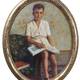 Il dipinto ritrae l’unico nipote maschio di Corompai, Bruno, e venne realizzato nel 1943, quando il pittore si trasferì a Cimpello con la moglie e la famiglia della figlia Ada. Il fanciullo sorride sereno all’osservatore con una tenerezza che fa immediatamente intendere quale fosse il suo legame con l’artista. “Fin dai primi anni della guerra i nonni abitarono a Venezia e gli incontri erano saltuari. Ma nel ’43 sfollammo in campagna, i nonni vennero con noi e – finita la guerra – si stabilirono in un appartamento comunicante col nostro”. Con queste parole Bruno Marchi, figlio di Gino Marchi e di Ada Corompai, inizia il suo racconto sul periodo di convivenza a Cimpello con i nonni Duilio Corompai e Felicita Civran, quando aveva nove anni. Proprio a quest’epoca risale il dipinto di cui qui si tratta e che così è descritto dall’effigiato allo stesso collezionista: “Però il tempo era molto, e così mi fece anche un ritratto a figura intera. Mi rappresentò come un piccolo intellettuale, con un gran libro aperto sulle ginocchia e un altro accanto (era la Divina Commedia illustrata dal Dorè). E mi ha fatto un’arietta presuntuosa da primo della classe. Però è carino e mi richiama la caducità delle cose umane: che bella massa di capelli avevo! Mi ricordo che in fase di lavorazione mi azzardai a dirgli che la linea delle labbra era troppo rossa. Mi rispose quasi gentilmente, forse ricordandosi che dopotutto ero il suo unico nipote maschio: per il resto aveva nove femmine. Ma bastò il tono, e mi guardai da ulteriori interventi. Come in altri ritratti, Corompai decide di utilizzare una tela ovale: Bruno viene interrotto nella lettura di un libro che presenta una bella figura sulla pagina destra. Un altro libro rosso (appunto la Divina Commedia) è poggiato sulla raffinata poltrona verde che contrasta a livello cromatico con la chiara parete di fondo e di cui il fanciullo sfrutta come seduta unicamente il bracciolo. Il soggetto, abbigliato con casacca e pantaloncini bianchi, sorride sereno all’osservatore, non tanto con l’aria presuntuosa di cui parla Bruno, quanto piuttosto con una tenerezza che fa immediatamente intendere quale fosse il suo legame con l’artista.