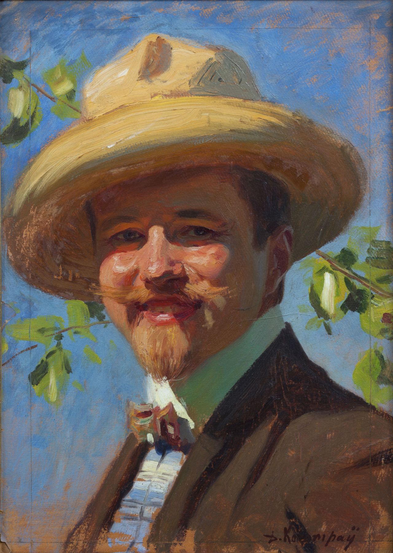 Si tratta di un autoritratto realizzato dal pittore in età giovanile, come testimoniano non solo i tratti del volto, ma anche la firma nella dizione ungherese che fa presupporre che esso fosse eseguito entro il 1920, anno in cui egli cambiò il suo nome da Korompaÿ a Corompai.
